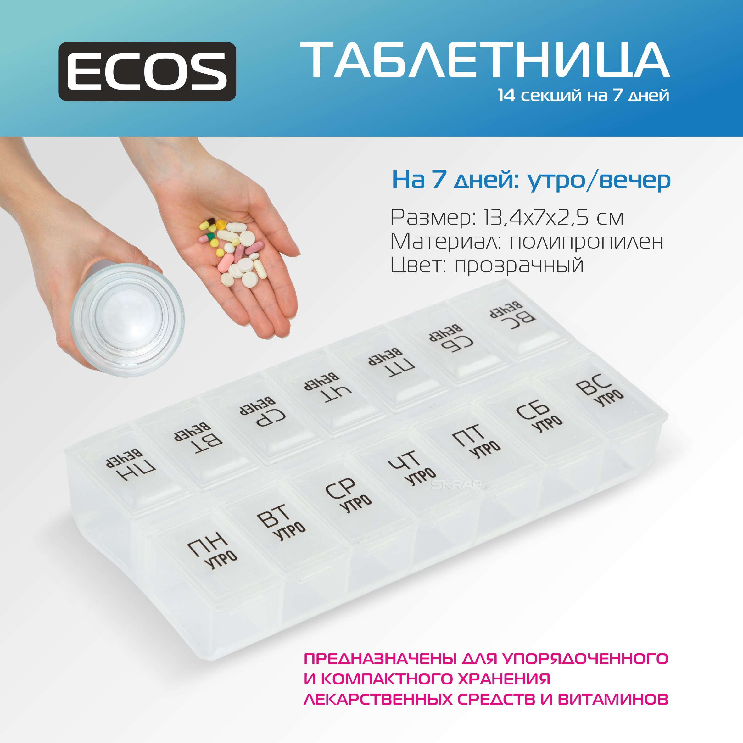 Таблетница, 14 секций