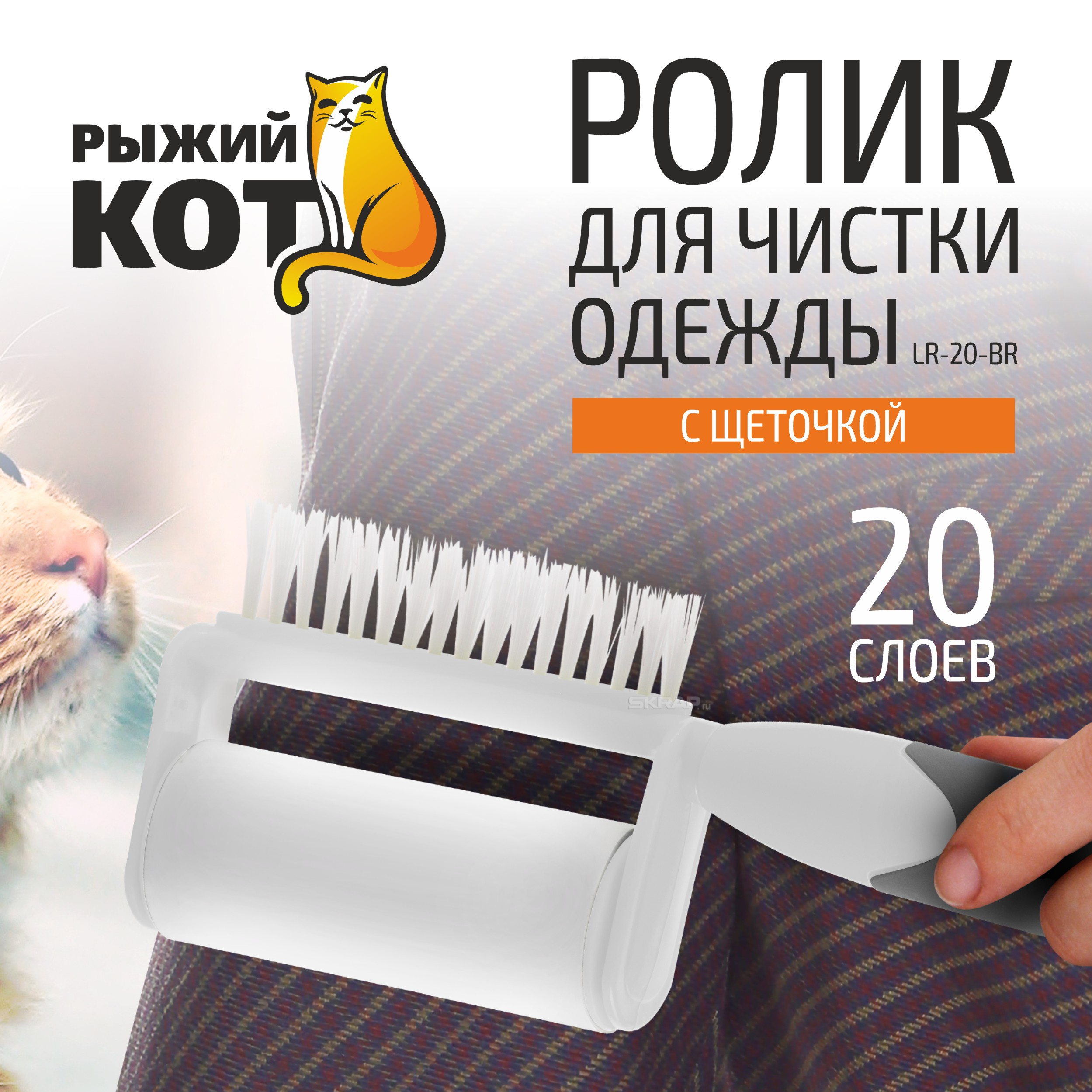 Ролик для чистки одежды LR-20-BR (с щеточкой) "Рыжий кот"