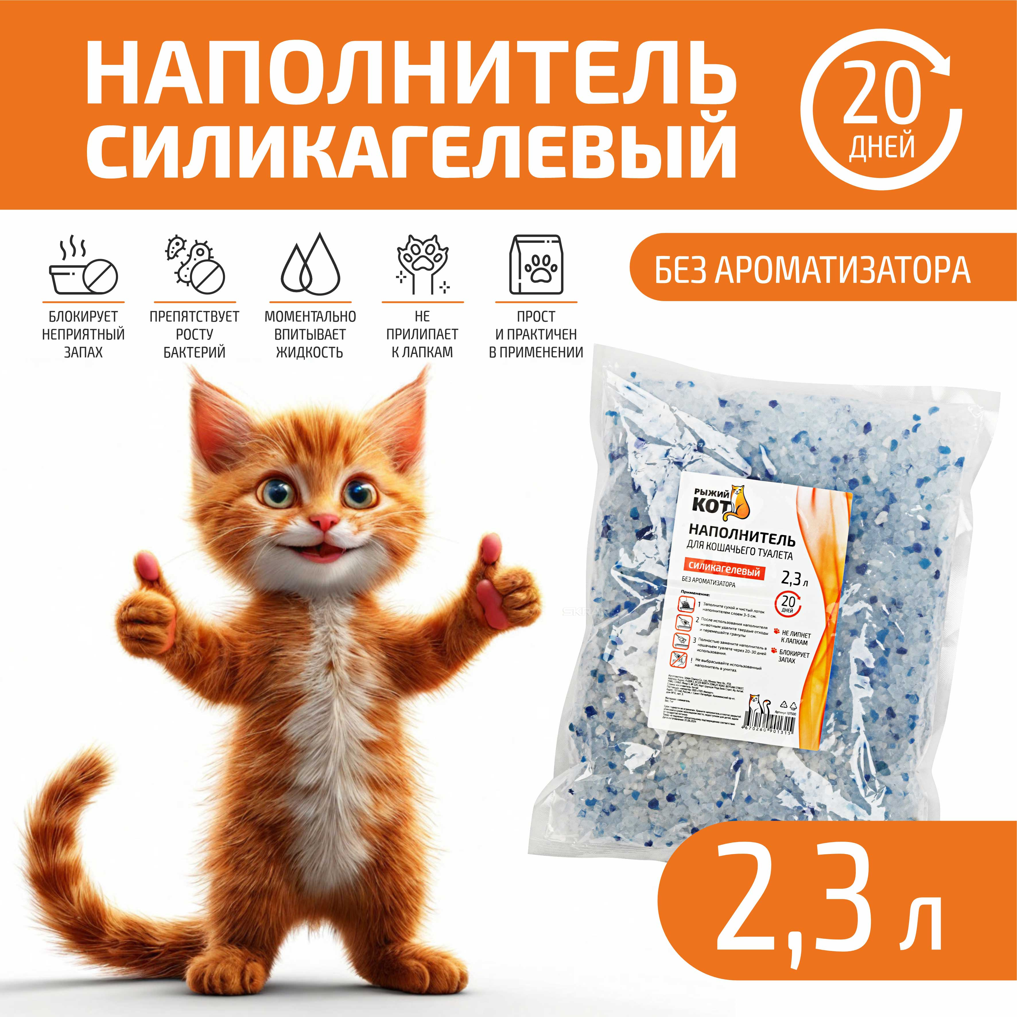 Наполнитель для кошачьего туалета, силикагелевый, без ароматизатора, 1кг