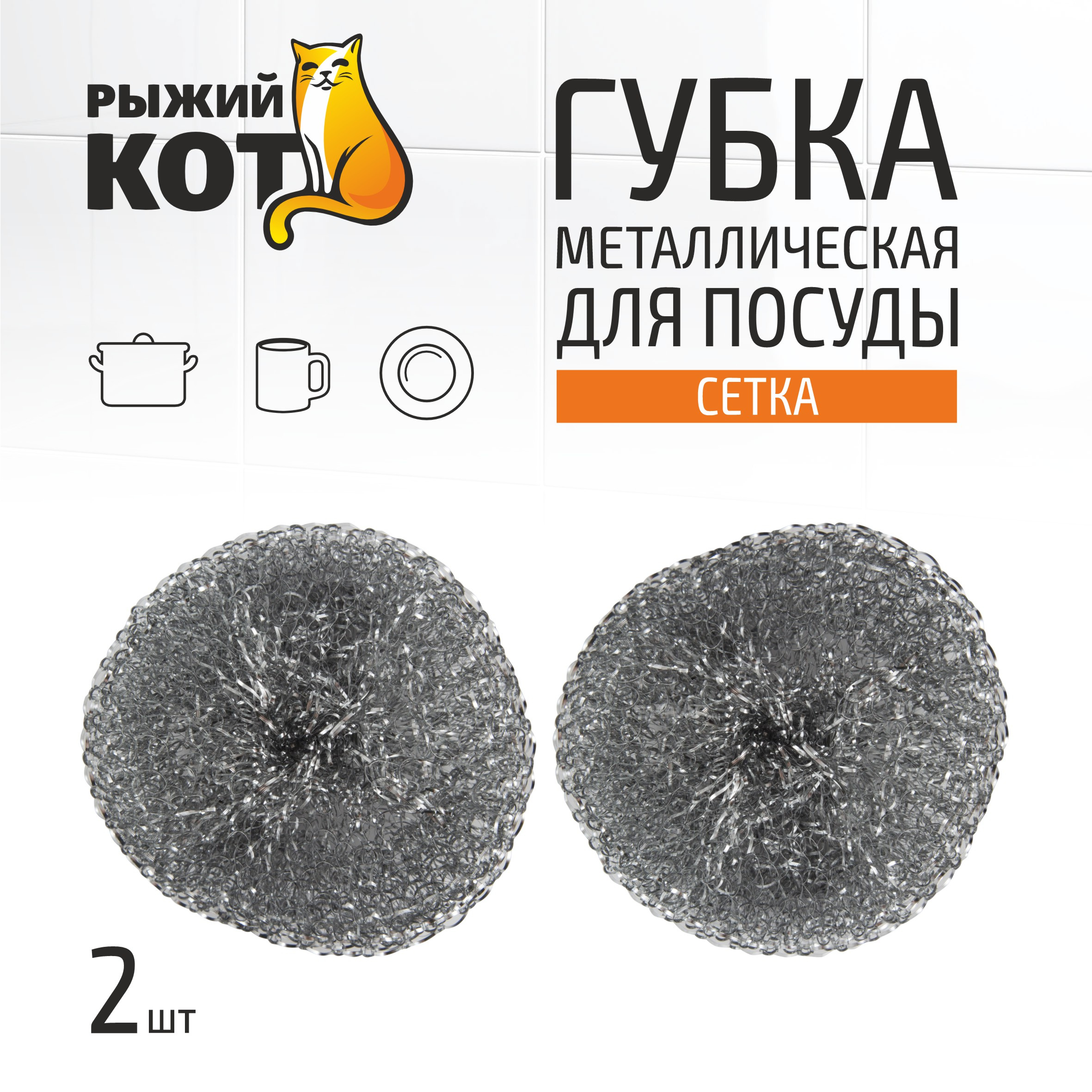 Губка металлическая для посуды, сетка, вес 15 гр., 2 шт.